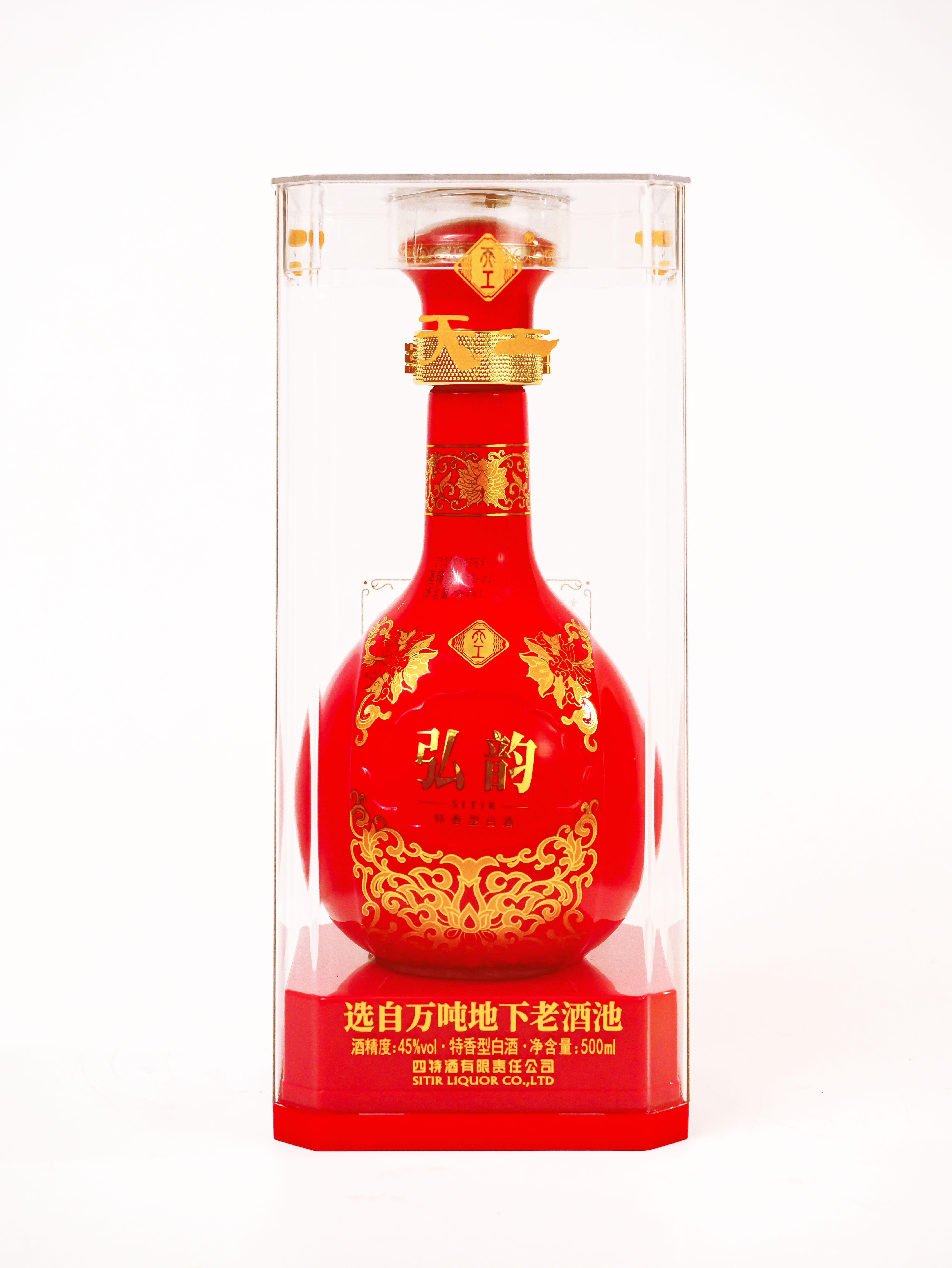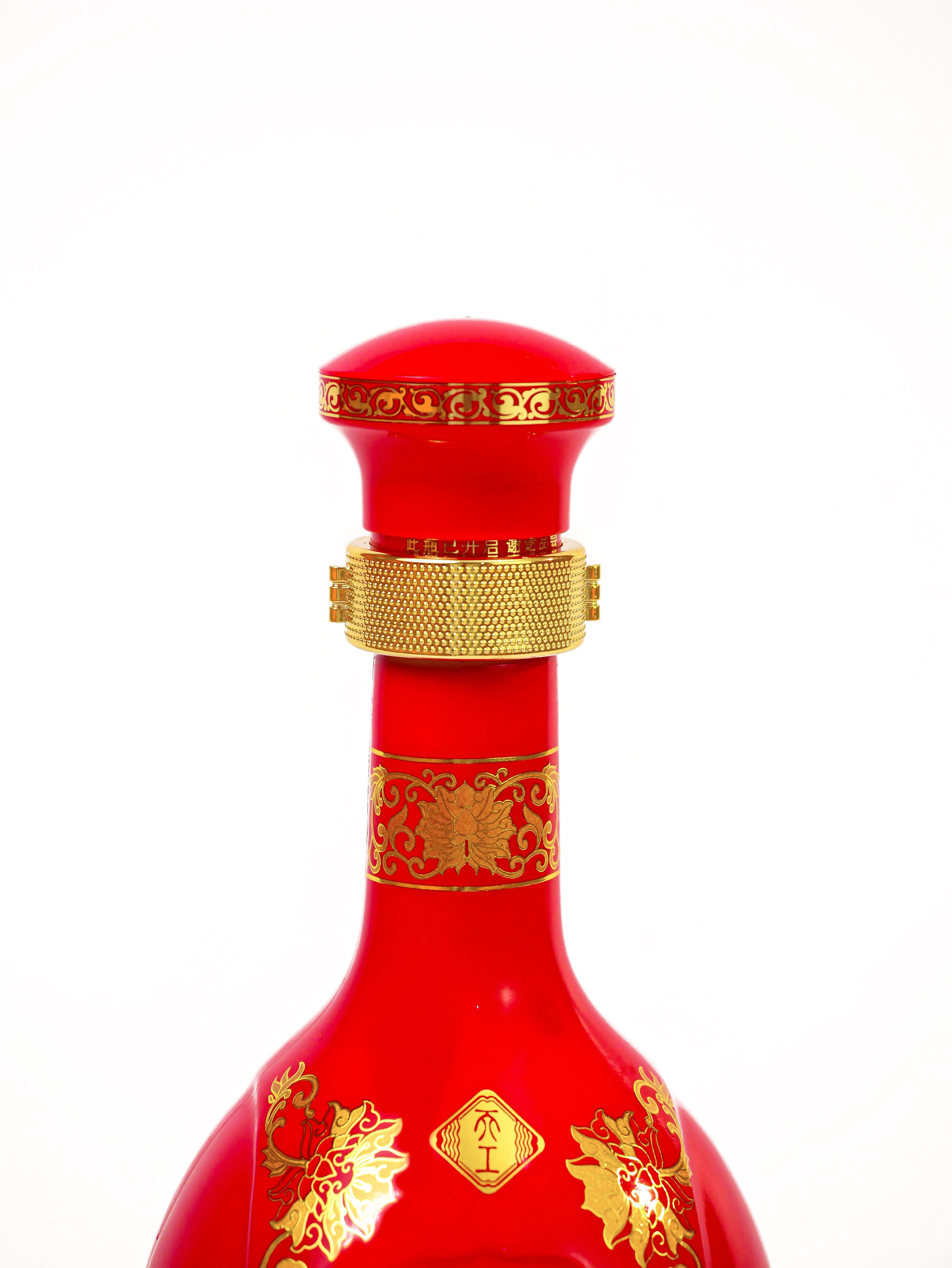采用象征吉祥的中国红,搭配尊贵鎏金撞色设计,红金配色亮眼高级。天球瓶形承袭东方美学经典,器型饱如揽月纳福,宝相花主纹样设计,承“宝、仙”之意,寓意富贵吉祥。 酒体微黄透明,香气幽雅舒适、细闻有陈香、酱香、米粮香的复合香气,入口醇甜柔顺,酒体丰满圆润,香味谐调,回味悠长。